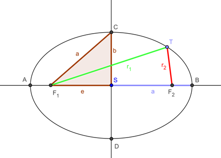 F1, F2 - fiksne točke: žarišta ili fokusi elipse