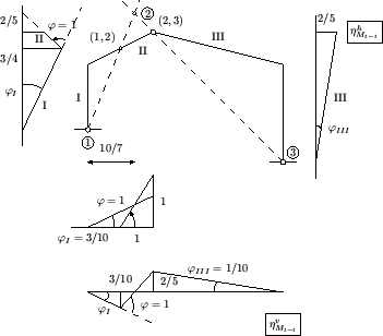 Da bismo kinematičkim postupkom konstruirali utjecajnu liniju za horizontalnu komponentu reakcije u ležaju A, raskidamo ležajnu vezu koja tu komponentu prenosi: nepomični zglobni ležaj zamjenjujemo horizontalno pomičnim zglobnim ležajem. Dobiveni mehanizam s jednim stupnjem slobode sastavljen je od dva diska -- disk A- C označit ćemo sa I, a disk C- B sa II.