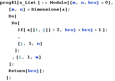 Napišite program koji ima za argument matricu a i računa koliko elemenata matrice ima koji su veći od 2.