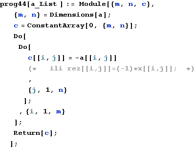Napišite program koji ima za argument matricu a i računa matricu c koja za koju je c=-a.