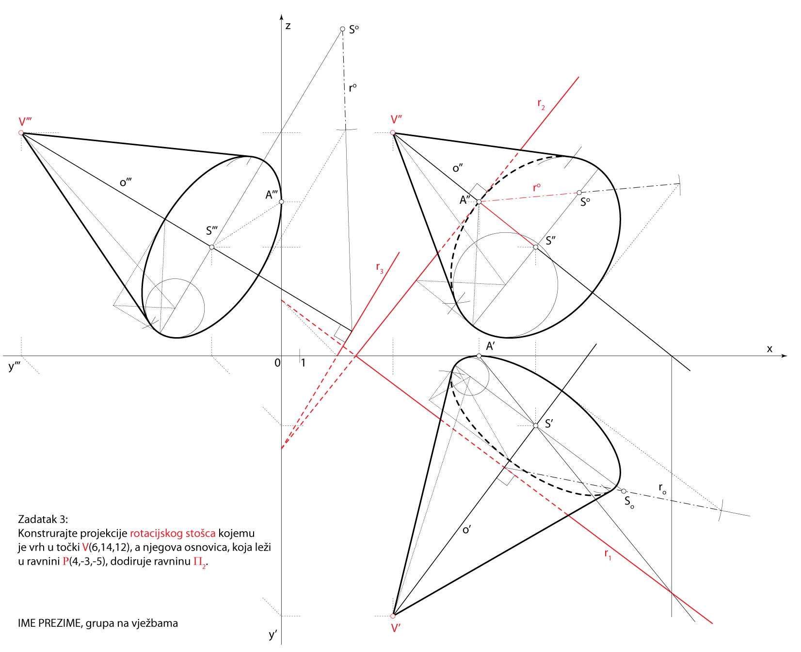 Rješenje u Mongeovoj projekciji (po koracima)