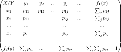 j=1∞f(xi,yj) = 1.