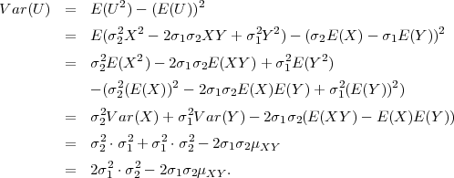 | V ar(X + Y ) = V ar(X) + V ar(Y ) + 2μXY | |